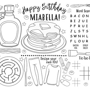 Printable Pancakes And Pajamas Coloring Placemat Etsy Canada