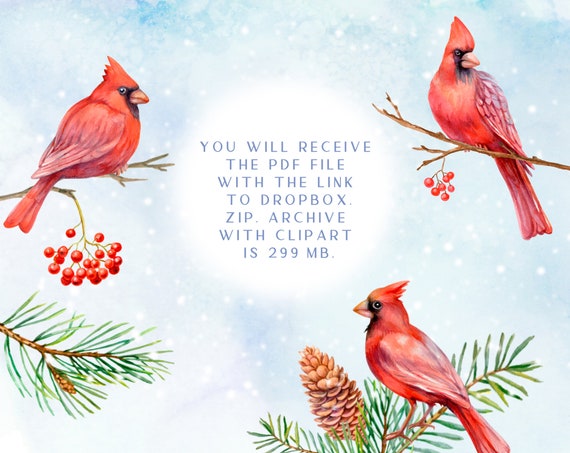 Cardinal Clipart Christmas Png Winter Watercolor Clip Art Etsy